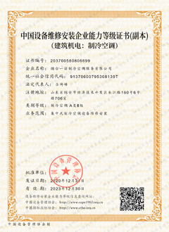 具有中國(guó)制冷空調(diào)設(shè)備維修安裝二級(jí)資質(zhì),全國(guó)質(zhì)量信譽(yù)有保障優(yōu)秀服務(wù)單位。